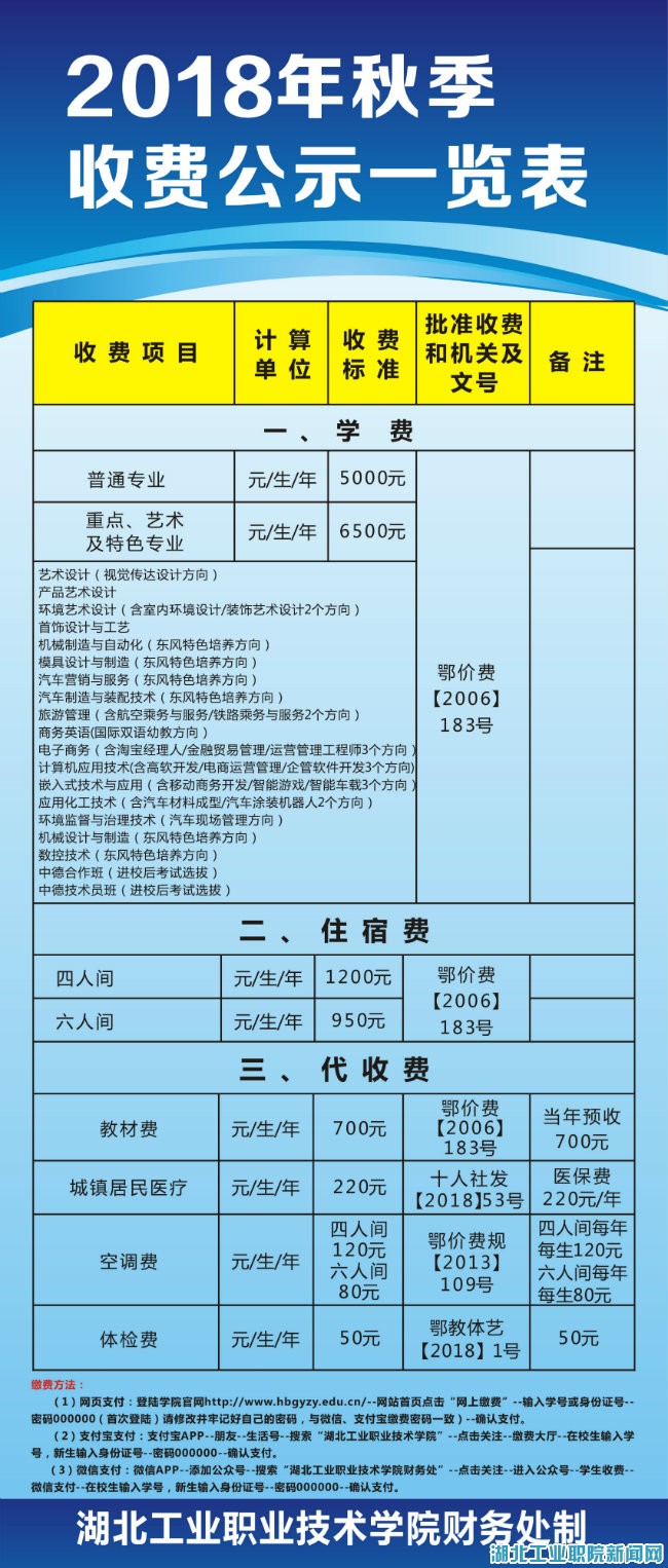 2018秋季收费公示一览表