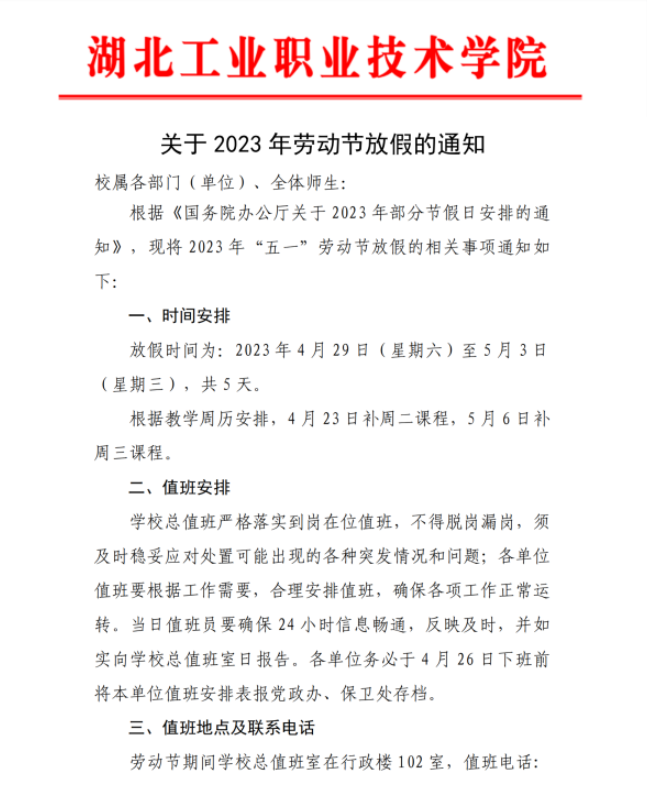 关于2023年劳动节放假的通知
