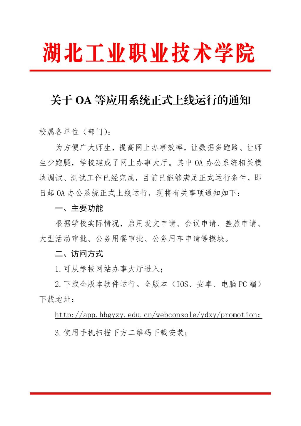 关于OA等应用系统正式上线运行的通知