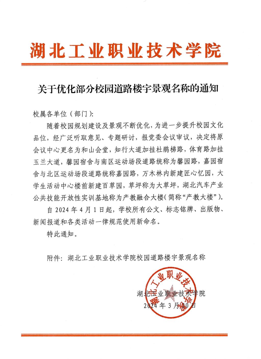 关于优化部分校园道路楼宇景观名称的通知