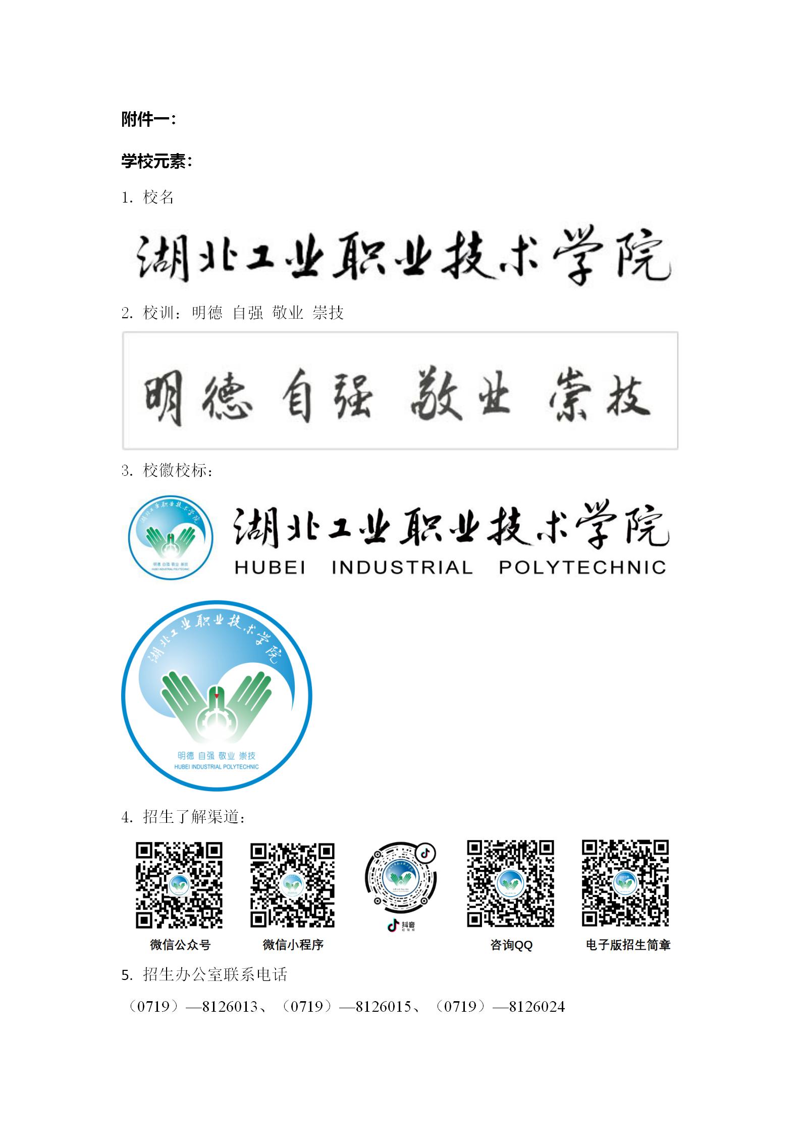 2.作品须包含校名、学校logo、校训、标志性建筑等要素,预留学校公章、校长签名位置,使用的校名必须是我校发布的官方版本。图案要求显示出“湖北工业职业技术学院”、入学年份“2025”、学校联系方式、地址、官方媒体矩阵二维码等基本信息。设计需具有较高艺术性、创新性,兼顾量产的可行性。包括录取通知书(含封套)设计、EMS快递包装设计。