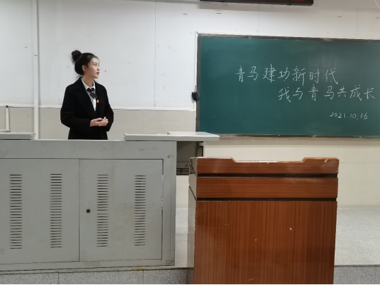 活动伊始,主持人鲁涧行介绍了青马班的发展历史,讲述了国家级、省级和校级青马工程的区别与相似之处,它们都是为了培养优秀的国家栋梁。紧接着,她解释了青马班的培养形式、培养机制、培养内容和培养目标,“聚是一团火,散是满天星”是青马班一直秉承的初心。鲁涧行同学结合自身经历,说明青马班是一个个人成长的良好平台,在学业和生活中都起到关键性作用。
