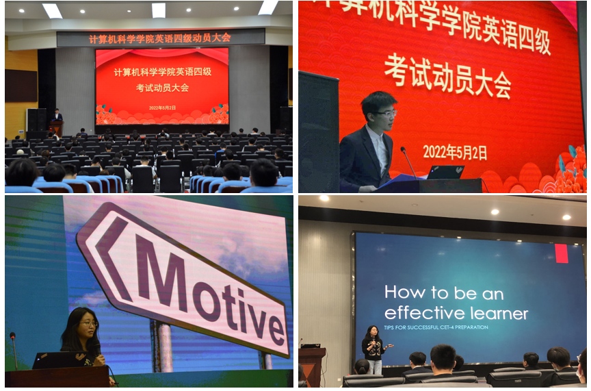 (通讯员:胡雨菲/摄 刘小钰/文)为激发同学们对英语学习的热情,营造良好的学习氛围,2022年5月2日晚19:00,计算机科学学院在长江大学西校区农科大楼1058报告厅召开了英语四级动员大会。学院党委副书记颜学俊、外国语学院教师何赟、21级专职辅导员张颖旭、兼职辅导员高小梅以及21级全体学生参与了此次大会,大会由21级辅导员张颖旭主持。