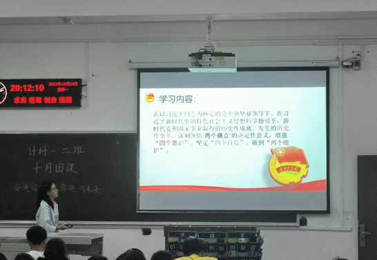 (通讯员汪智)为深入学习宣传贯彻党的二十大精神及团十九大精神,着力提升团的引领力、组织力、服务力和大局贡献度,全面深化改革,全面从严治团,不断保持和增强政治性、先进性、群众性,团结引领广大团员青年永远跟党走、奋进新征程,以实际行动践行党的二十大精神。经校团委研究决定在全校范围内开展“奋进写辉煌,奔跑向未来”主题教育实践活动。计算机科学学院在10月以团支部为单位召开了以此为主题的团会活动,本月示范团支部为计科32301班,团会主题为“奋进写辉煌,奔跑向未来”,主讲人为该班团支书姚烨同学,计科32301班全体同学参加。