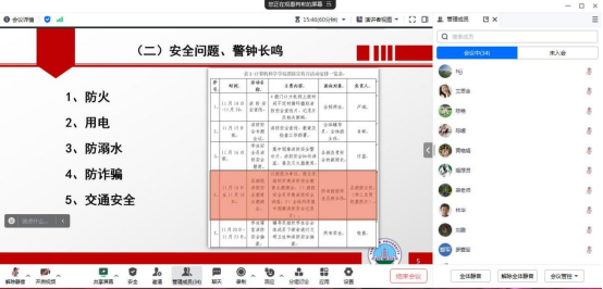为做好秋季工作部署,加强班主任队伍建设,落实学校关于切实加强学生宿舍消防安全工作的通知精神,为学生的生命财产安全保驾护航,计算机科学学院于11月23日晚召开了线上班主任会,强调安全工作,布置召开主题班会内容。学院党委副书记肖彬主持会议,学院全体班主任参会。