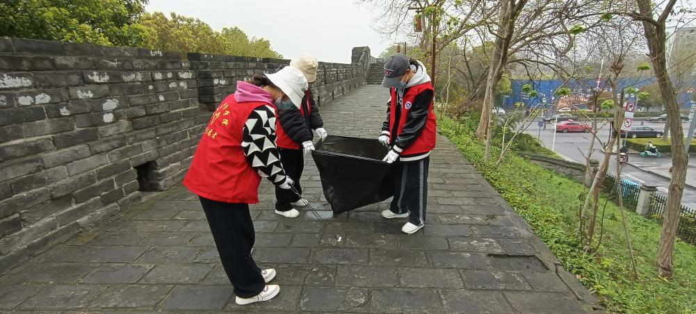 恰逢三月雷锋月,巧遇服务意愿浓。长江大学计算机科学学院志愿服务队于2023年3月19日下午在古城墙景区举办了历时三小时的古城墙清扫活动,活动人数25人。