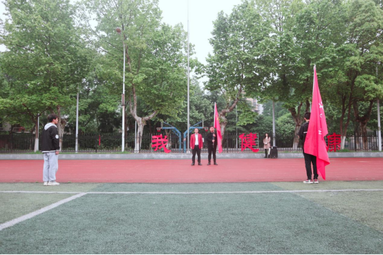 最后电子信息学院党委副书记郭启炜老师为计科学院授予“千班唱红歌,万人健康跑”的旗帜。计科学院“万人健康跑”活动正式开始,在领跑同学和大家的积极参与下,活动拉下序幕。