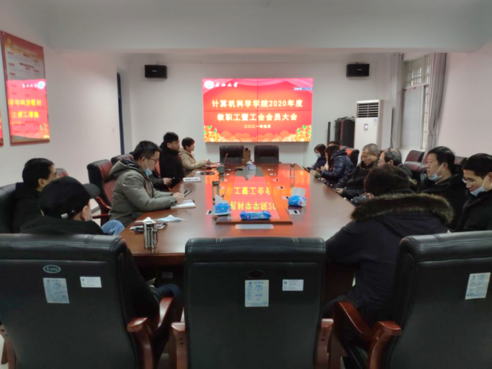 1月27日上午9:30,计算机科学学院召开了2020年度教职工暨工会会员大会,线上线下同步进行,部分教师代表在4教307会议室参加了现场会议。会议由工会主席、分党委副书记颜学俊主持。