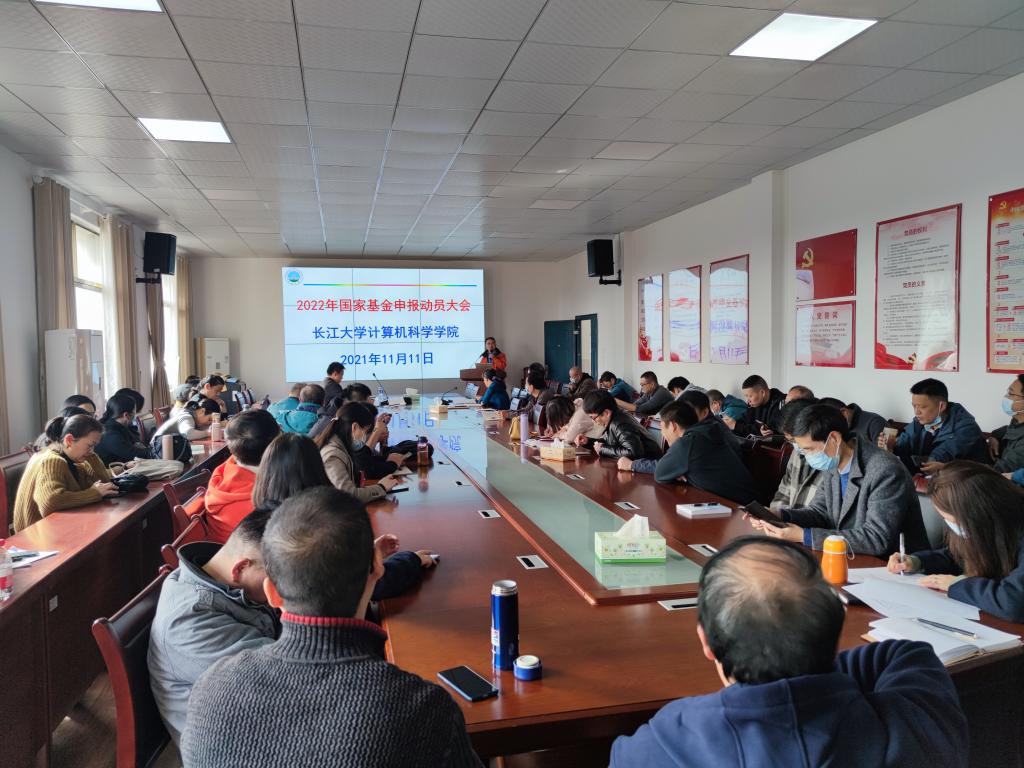 2021年11月11日下午,计算机科学学院在5教501会议室召开2022年度国家科学基金申报动员大会。院长崔艳荣要求全院教师能报尽报,副院长宋文广主持会议。