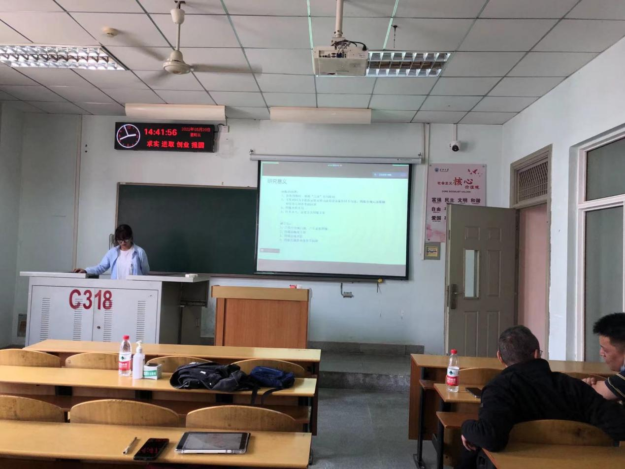 2022年5月20号下午14:00,长江大学计算机科学学院研究生学术论文报告会第七讲在东校区13教C318顺利举行。经过院长崔艳荣教授、副院长宋文广教授、副书记颜学俊老师的合理安排,学工办付盈副教授、教学办黄静老师的精心组织,计算机科学学院2022年研究生学术论文报告会第七讲顺利开展。学术论文报告会由硕士生导师胡杰、魏登峰老师莅临指导。