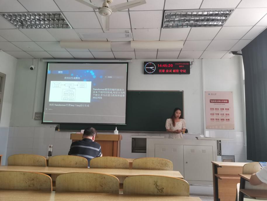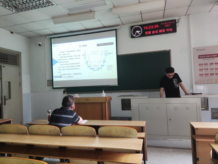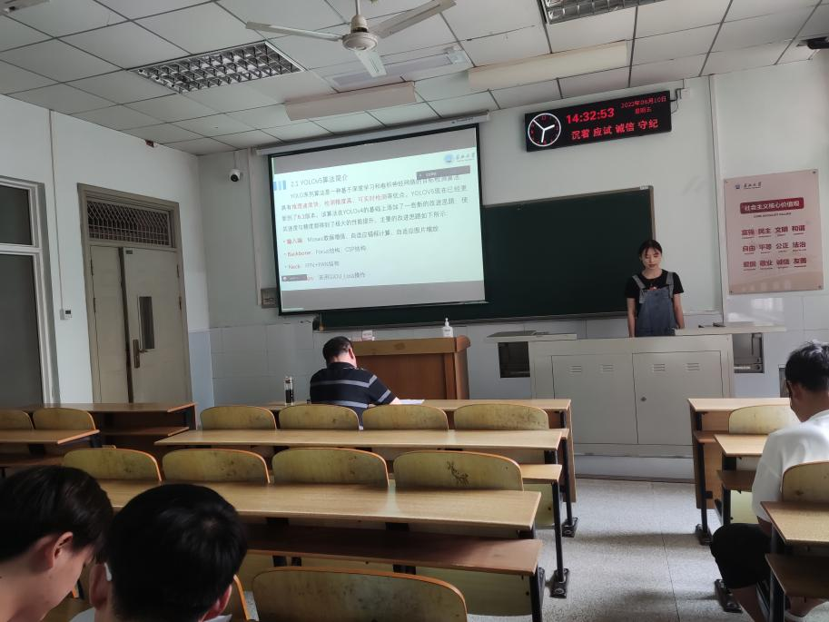 长江大学计算机科学学院8位研究生依次登台演讲,分别围绕各自的研究方向,为同学们分享了8个课题:基于GAN的番茄病虫害图像数据增强方法研究特征压缩激活作用下U-Net网络的煤尘颗粒特征提取YOLOV5算法改进、基于YOLOV5的钢材表面缺陷检测算法、基于检索与生成对话模型的深度融合、可预测链路可靠性协议的卫星通讯技术研究、小样本语义分割的方法与应用、Multi-scale feature fusion Change Detection model等内容。学术论文报告会已经成为同学们知识共享和传播的一种重要方式,在演讲过程中,导师与听众和演讲人针对相关研究成果互动、探讨。每名研究生演讲完后,两位导师从全方位对演讲学生的汇报进行仔细点评,对其研究内容可能遇到的科研困难进行指导,通过点评有效促进了研究生的成长。