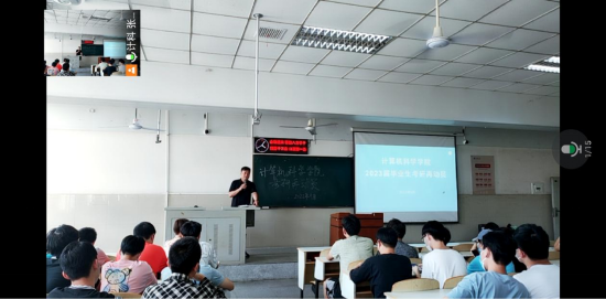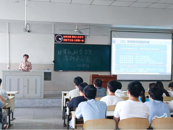 (通讯员骆训凤)一战成硕,一“研”为定!为了帮助考研学子们明确目标,增加考研的信心,长江大学计算机科学学院于20229月14日下午4点在东校区12104教室举行了考研动员大会,出席本次会议的有计算机学院院长崔艳荣、党委副书记颜学俊以及2019全体考研同学,会议线上线下同步进行