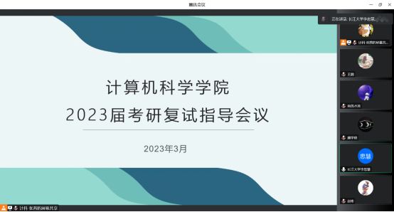 (通讯员 张茜 王圆)为促进2023毕业生更好地备战研究生复试2023年3月16日晚19:00计算机科学学院线上召开考研复试指导交流会。本次会议由学院党委副书记颜学俊主持学院副院长赵彬油工学院副院长李忠慧、计科学院软件工程系主任王同喜物联网工程系白凯、2019级辅导员张茜以及院一百余名备战研究生复试的毕业生参加了本次会议。