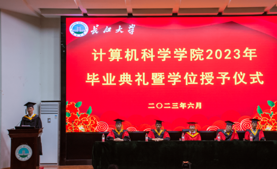 长江勇逐浪,扬帆再起航。6月13日,计算机科学学院2023届毕业典礼暨学位授予仪式在12教405隆重举行。学院全体领导、各系部导师代表、班主任代表、全体辅导员以及学院200余名毕业生参加典礼。