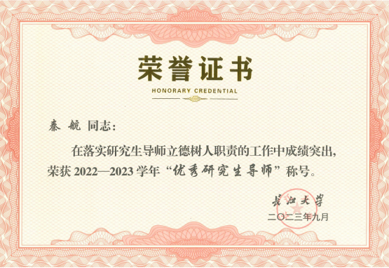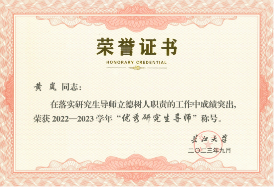 秦航、黄岚两位老师荣获2022-2023学年“优秀研究生导师”称号