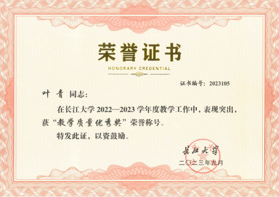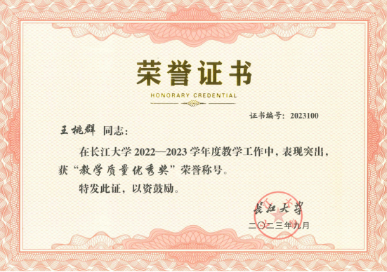 王桃群、何黎霞、黄岚、李梦霞、王剑、叶青等6位老师荣获2022-2023年“教学质量优秀奖”荣誉称号