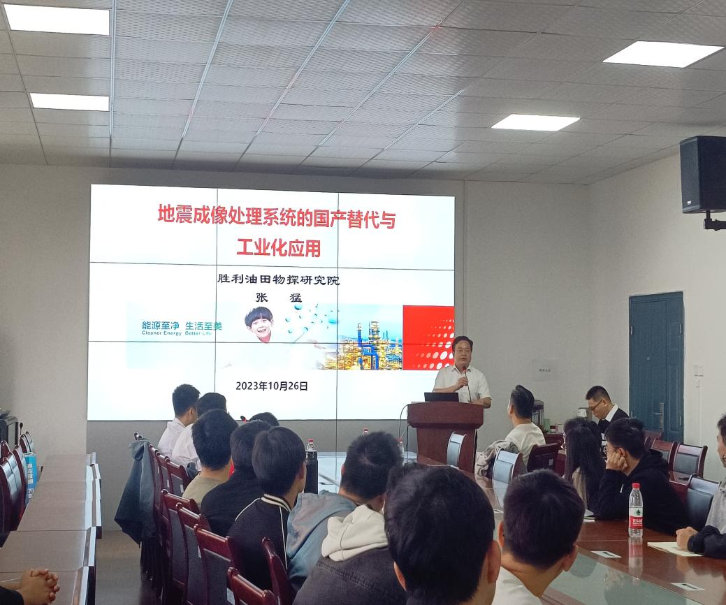 (通讯员 余珺瑞 那诗悦)10月27日上午,计算机科学学院在东校区5教501会议室举行“长大20年〞学术论坛暨计科讲坛(2023年第十七讲),长江大学勘查技术与工程专业2003届校友、胜利油田物探研究院首席专家的张猛以《地震成像处理软件的国产替代与工业化应用》为题作专题报告。报告会由学院党委书记郑健主持,胜利油田物探研究院信息技术室副经理史进、胜利油田物探研究院组织科主办王钟远,以及计算机科学学院60余名师生现场聆听了报告。