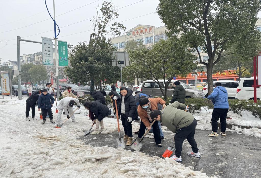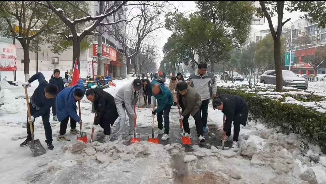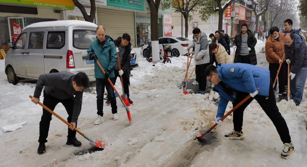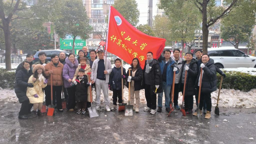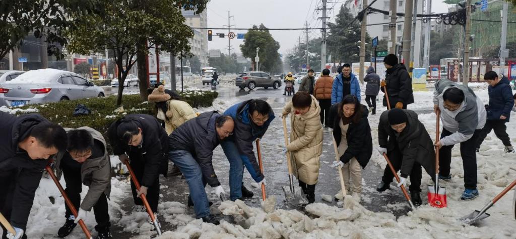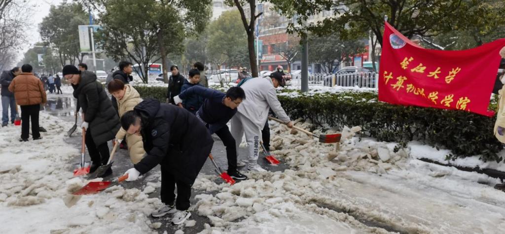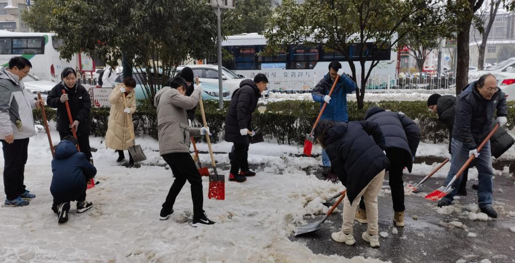 近日,湖北荆州遭遇大范围低温雨雪冰冻天气,道路积雪结冰给交通、居民出行带来了诸多不便。根据荆州市委《关于组织市直机关和企事业单位党员干部开展城区主次干道除雪破冰工作的通知》要求和学校工作安排,2月7日上午计算机科学学院以雪为令,广大党员教师迅速集结,在院长、书记的带领下积极参加除雪破冰工作。