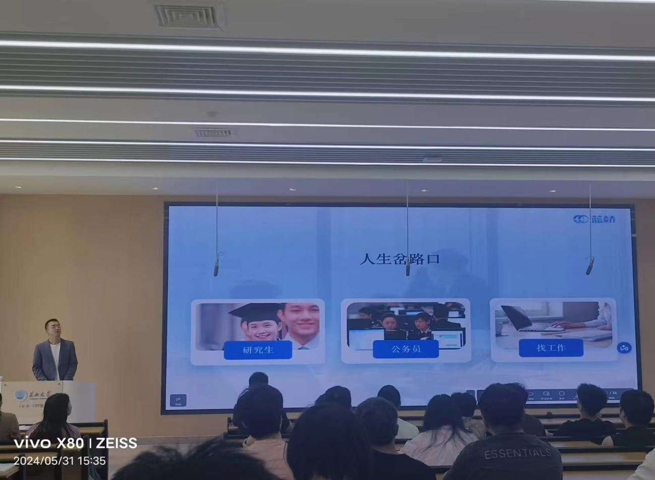 为帮助学生更好地规划职业发展,学院于5月31日下午在16教A109举办一场就业指导讲座。本次讲座特邀三位资深嘉宾,围绕大学生就业指导、职业规划及考研求职策略等主题,为学生提供深度解析和实用建议。