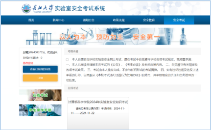 4.组织2024级本科新生完成实验室安全知识考试。实验室安全知识考试作为新生入学教育的重要内容之一,旨在增强学生的实验安全意识,保证实验教学安全顺利开展。