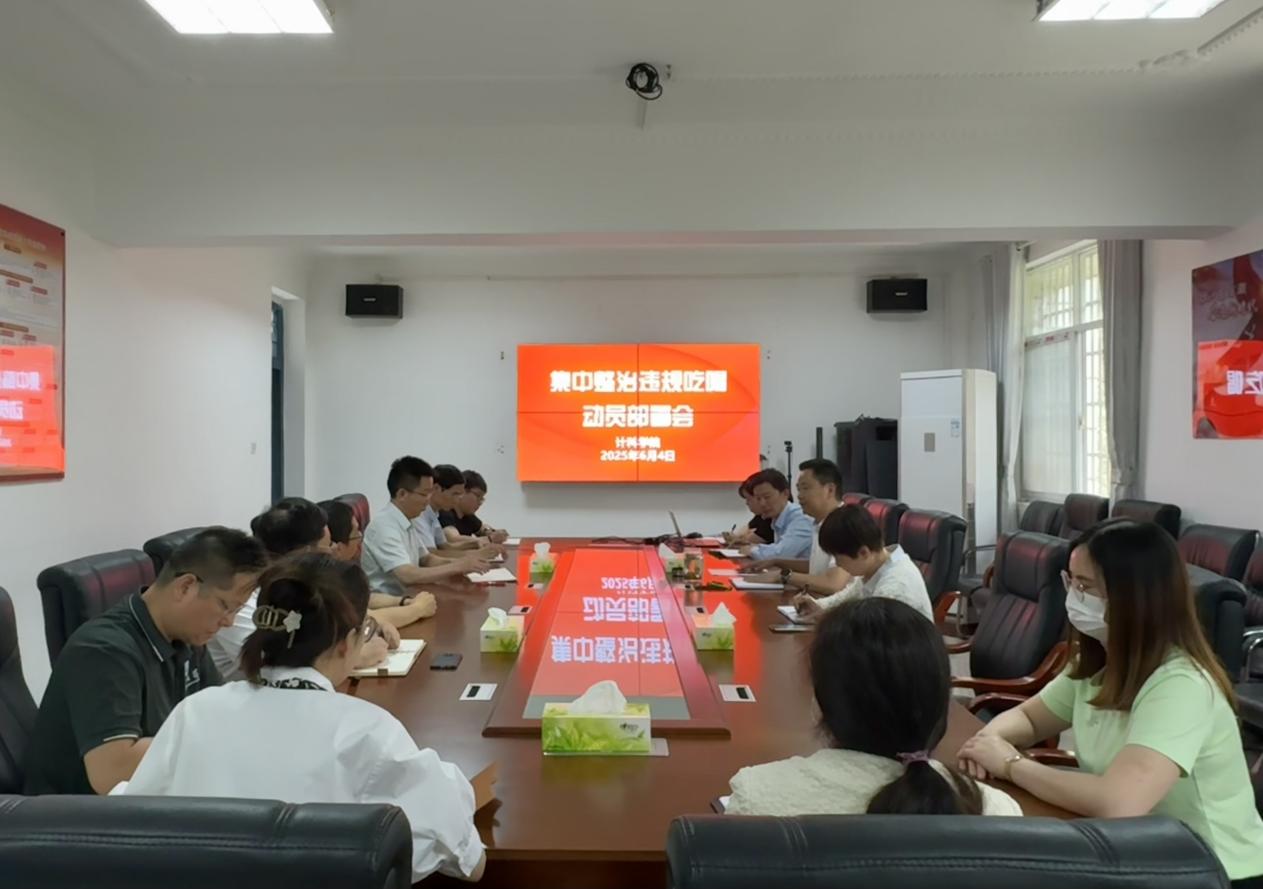 6月4日,计科学院召开违规吃喝专项整治动员部署会。会议传达了中央层面深入贯彻中央八项规定精神学习教育工作专班及中央纪委办公厅关于2起党员干部违规吃喝典型问题的通报精神,并部署落实举措。党委书记郑健主持会议并讲话。学院班子成员、党委委员及各党支部书记、系部主任、科室科长、全体辅导员参会。