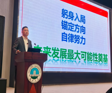 入学教育环节,学校办公室廖鹏程老师以轻松幽默的方式,从认知、规划、行动三个层面作专题分享。他回顾学校由四所底蕴深厚院校合并的发展历程,介绍“一校七区”(现用三区)布局,解读校园文化特色与资源优势,并就如何落实大学规划提出切实建议。他特别强调:“大学不是‘躺平期’,而是‘成长加速期’,只有不断精进,方能赢得未来”。