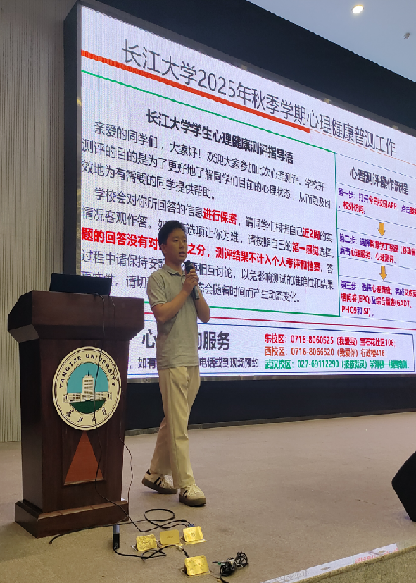 辅导员蒋代运老师的“心理健康与防艾教育”讲座则温情满满、干货十足。他精准剖析了新生入学适应期可能面临的孤独感、学业压力等心理困扰,现场传授“觉察情绪—接纳情绪—疏导情绪”的调节三步法,鼓励新生主动与老师、同学沟通,必要时寻求专业心理支持。在防艾教育环节,蒋代运老师通过科普短片、知识问答等互动形式,生动讲解艾滋病的传播途径、预防措施及相关法律法规,引导学生树立健康生活观念、尊重生命价值。