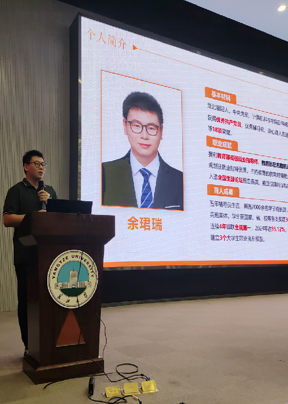 辅导员余珺瑞以“职业规划与安全守护”为主题,结合计算机行业发展趋势与就业前景,引导新生从“兴趣+能力”双重维度出发,科学规划大学学业路径。他还通过“大学生迷茫模型”解析,为新生提供了破解迷茫、明确目标的实用方法。在安全防护板块,余珺瑞老师结合近年来校园诈骗典型案例,详细拆解网络刷单、虚假兼职、冒充客服等常见骗局的识别技巧,反复强调“保护个人信息、树立防范意识”的重要性;针对即将到来的十一假期,他逐一明确假期安全注意事项及请销假制度,为新生安全过节筑牢防线。
