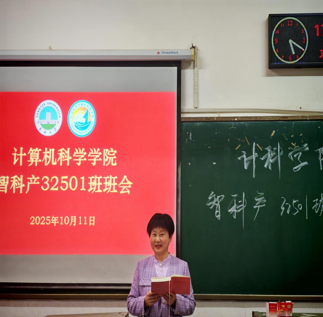 10月11日16:00 ,计算机科学学院智科产32501班在西校区2教205教室召开班委竞选暨班级建设与专业引领班会。计算机科学学院院长崔艳荣、党委副书记艾林、院长助理雷鸣及智科产32501班全体学生共同出席,会议由辅导员余珺瑞主持。