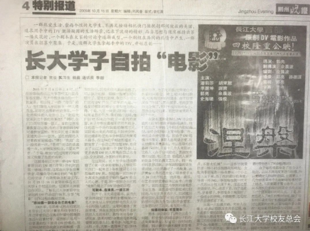 渐渐地,郭亮开始琢磨着正式拍点东西。郭亮当时就想,独木不成林,做作品,肯定是有个学校社团组织会更好,也能够把更多喜欢影视制作的伙伴凝聚起来。所以在零三年大二时,郭亮向校团委申请创立了DV协会。成为长江大学DV协会的创始人后,郭亮开始跟着电教室的张鹏老师学技术。那里有更好的设备,还有一些大的索尼betacom机。于是,郭亮就跟着老师一起拍摄,反复琢磨老师讲的推拉跟甩摇移,慢慢练就前期的拍摄和后期剪辑能力。