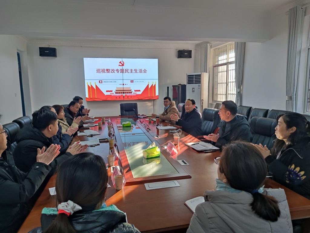 按照校党委的统一部署,2021年12月28日上午,我院召开了省委巡视整改专题民主生活会。督导组组长周思柱副校长、督导组成员彭飞书记、督导组联络员信晓阳科长到会指导。学院处级党员领导干部黄群俊、向宇、詹炜、宋文广、颜学俊参加了会议,组织员郭麦成因居家隔离提交书面检查材料,院长崔艳荣、内设科室主要负责人熊晶、冯翠丽、付盈、苏玉容、周双列席会议。