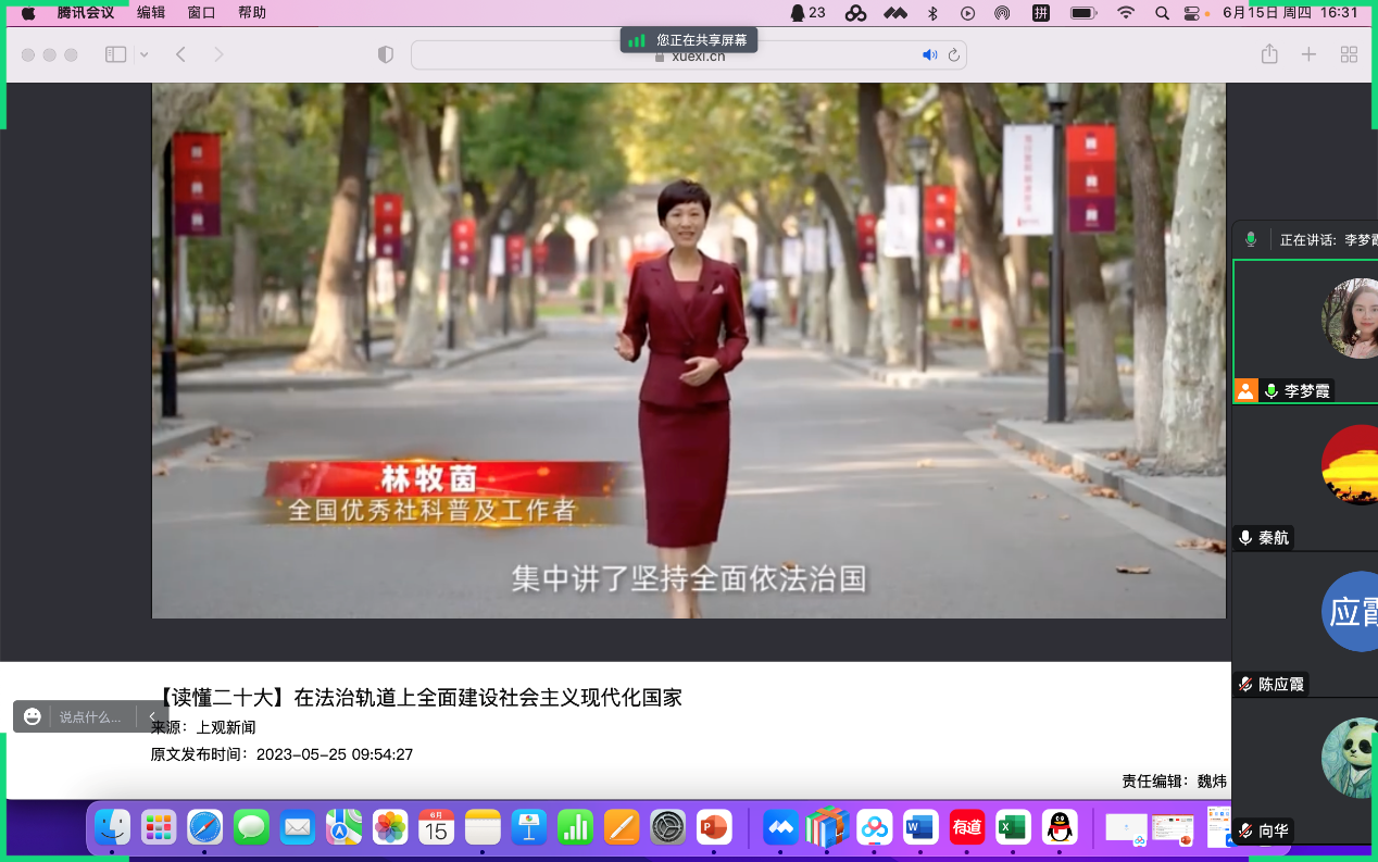 6月15日下午,学院开展了2023年6月党委理论学习中心组集中学习暨全体教职工政治理论学习活动,本次活动由各党支部书记主持。