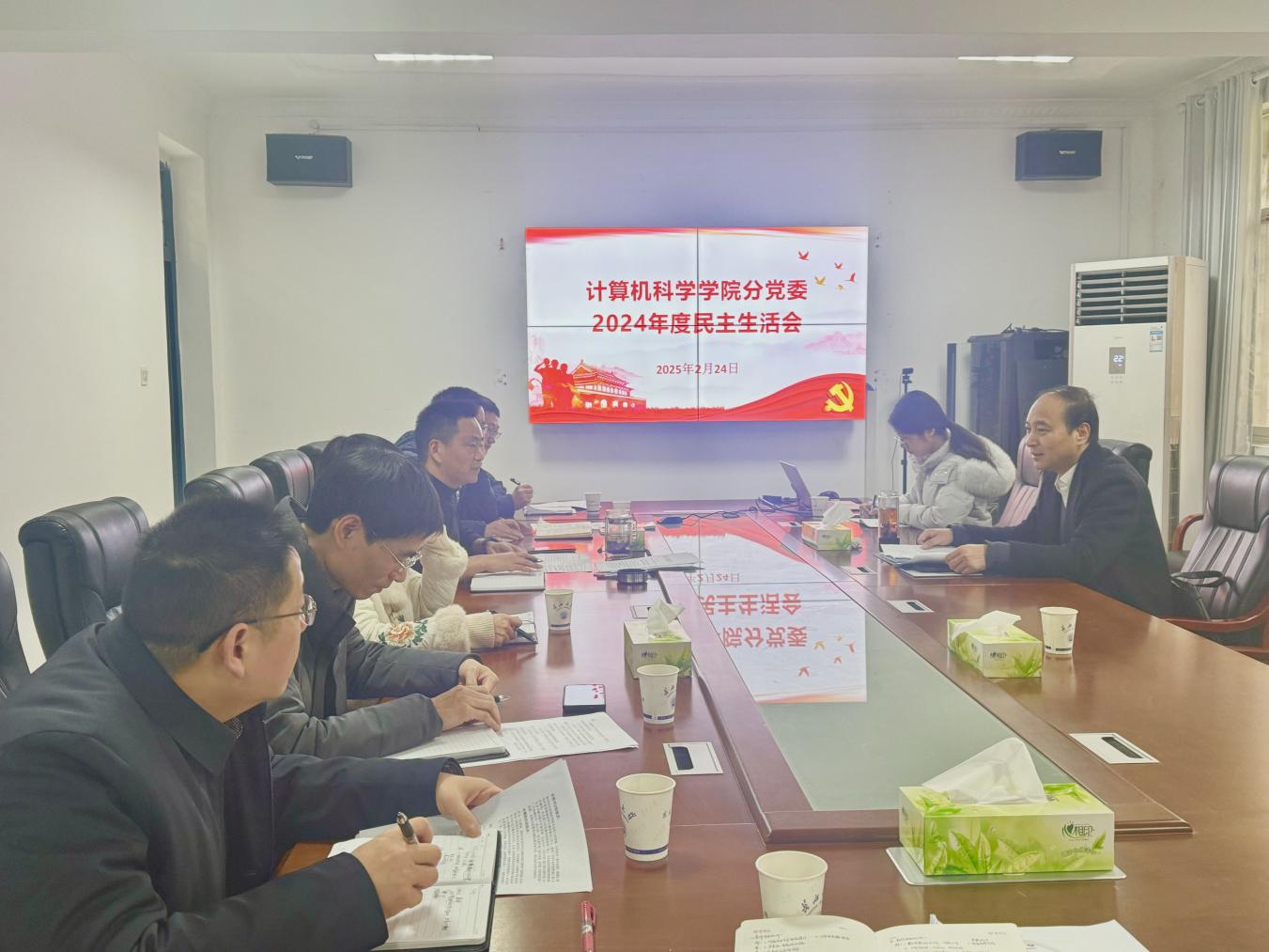 2025年2月24日上午,计算机科学学院2024年度党委领导班子民主生活会在4号教学楼307会议室召开。校党委常委、副书记、副校长杜国锋、化学与环境工程学院党委书记王丽和联络员冯梦婵到会督导。会议由院党委书记郑健主持。