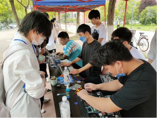 本次开幕式现场分为四个区域,分别是志愿活动区、游戏区、领奖区和计算机知识图文展。在志愿活动区有志愿者帮助同学清灰及重装系统筹优化电脑的义务活动,由计算机科学学院极客班承办。本活动旨在鼓励大家将所学的知识运用到实际,提高动手实践能力。同时运用所学知识力所能及地服务他人。除此之外的游戏区有乐趣横生的套圈小游戏,在游戏中大家都能比较轻松的获得定制口罩、钥匙扣及多肉小盆栽。开幕式现场的气氛十分融洽,同学们对于本次活动也是无不称赞。