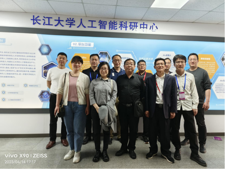 随后,学院陪同中学校长和老师参观长江大学人工智能科研中心,计科学院黄彬老师做专业讲解。他给大家介绍了人工智能科研平台的建设情况、核心技术及其在教学和科研中发挥的作用,并进行了现场演示。