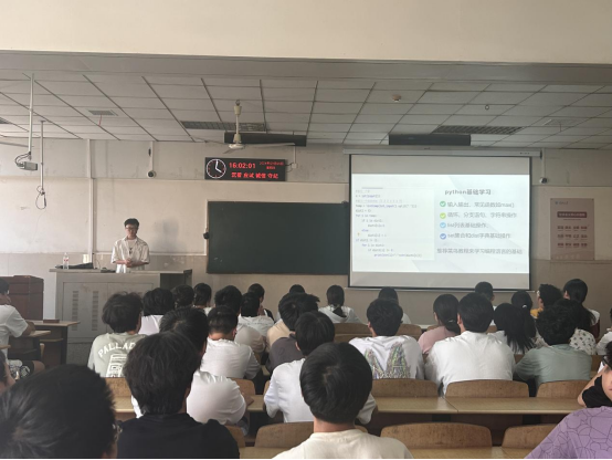 计科12101班韩琪琨向同学们分享了计挑赛python组比赛经验和学习方法。他强调:“在准备竞赛过程要多做题、多思考,只有通过不断练习和思考,才能对题型熟悉,将知识吸收,在竞赛中游刃有余,取得优异的成绩”。他还推荐了针对基础学习的菜鸟教程和刷题平台leetcode以及PTA天梯杯题单。最后鼓励同学们积极参加竞赛,不仅能锻炼编程能力,还可以提前为推免考研做准备。