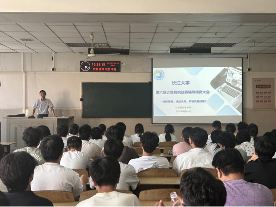 为激发学生竞赛热情,提升编程实践能力,深入了解参赛规则,计算机科学学院926日下午在12202举办了主题为:点燃青春、挑战未来,共创竞赛辉煌的长江大学第六届计算机能力挑战赛辅导动员大会(以下简称计挑赛)本次会议由2023级辅导员郭帅主持,教学副院长陈中举老师及全校计挑赛参赛学生参会