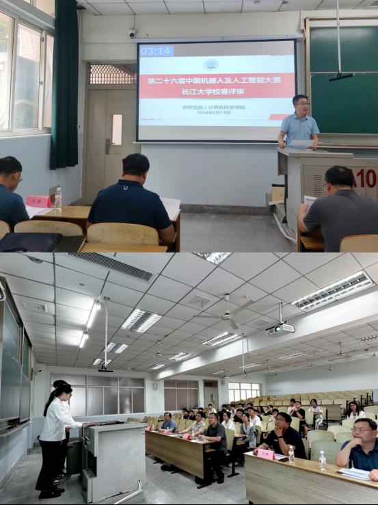 角逐智能领域,弘扬创新精神。为引导和激励我校研究生参加科技创新赛竞赛,在研究生院的大力支持下,6月14日14:00,13教102,计算机科学学院承办举行了第26届中国机器人及人工智能大赛长江大学校赛。邀请机械学院刘少胡教授、电信学院周箩鱼副教授、计科学院赵鸣教授、白凯副教授以及付盈副教授担任赛事评委。